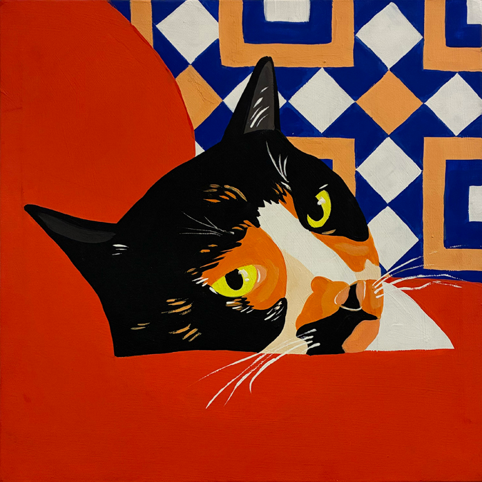 חתולה בשם פיצה על כורסא אדומה, רקע גאומטרי