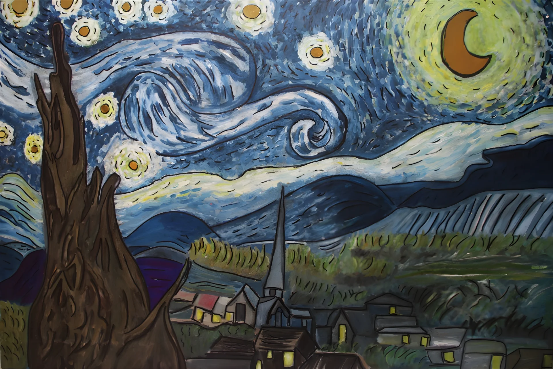 A Starry Night Interpretation | Daniel avraham hadad | Paintings | Under $1000
