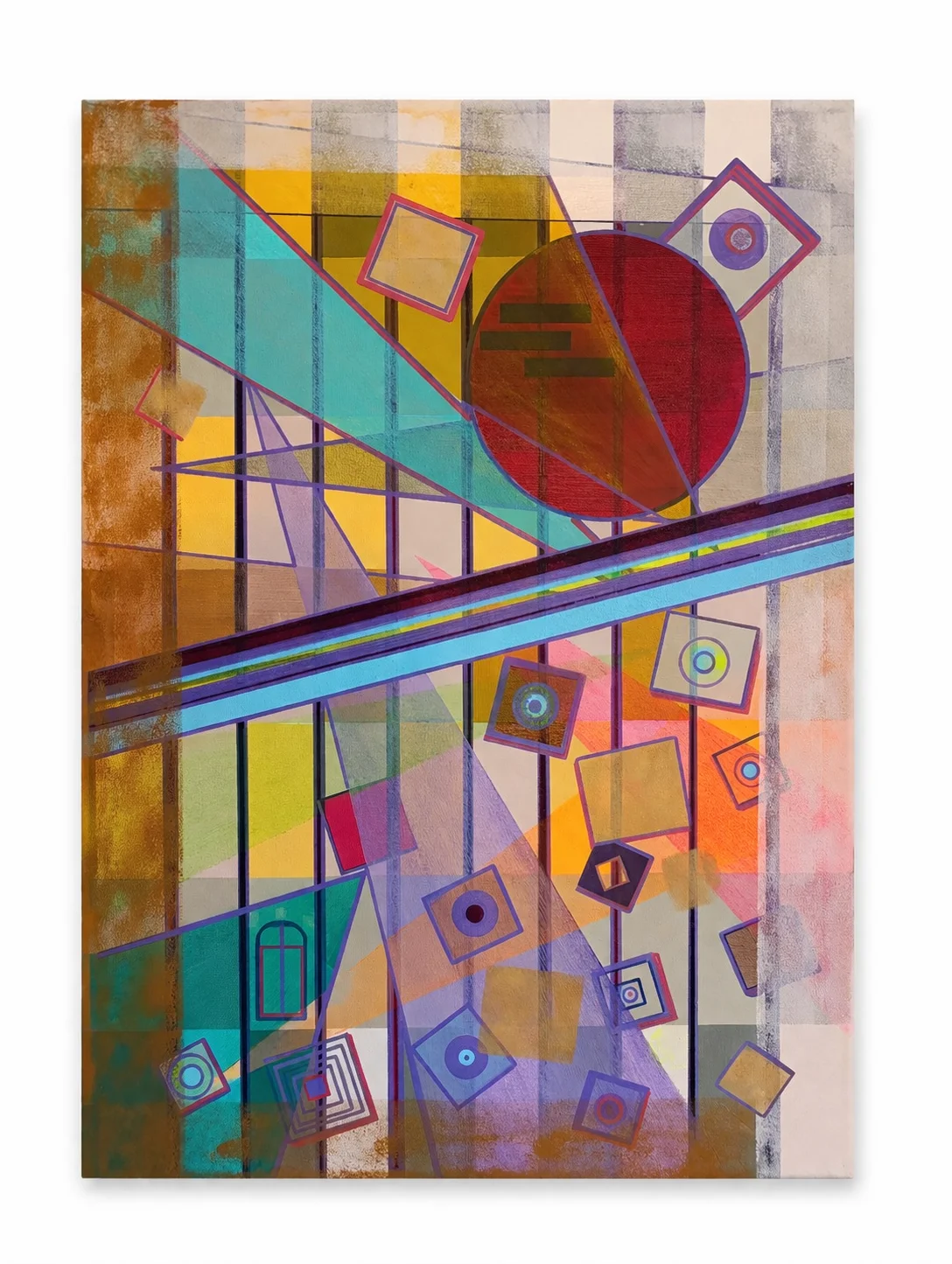 A geometric composition exploring the tension between order and chaos.Layered forms, intersecting lines, and contrasting colors create movement, depth, and a bold visual presence. The work balances structure with expressive freedom, inviting the viewer to find harmony within disorder.