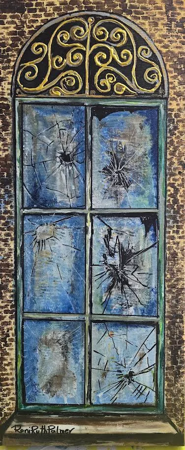 An original and thought-provoking work depicting an ancient window, decorated with delicate ironwork, whose reflection reflects a turbulent inner world. The cracked panes tell a story—of time gone by, of moments that were broken but not gone, and of beauty born precisely from the flaws. The deep blue tones and rough textures create a sense of depth and mystery, while the cracks spread like memories etched in the soul. The golden frame adds a spectacular contrast between richness and warmth and the coolness and solitude beyond the window. This is a work that invites the viewer to look beyond the surface, discover hidden stories, and feel the emotion between the fragments—a place where pain and beauty meet in quiet harmony.