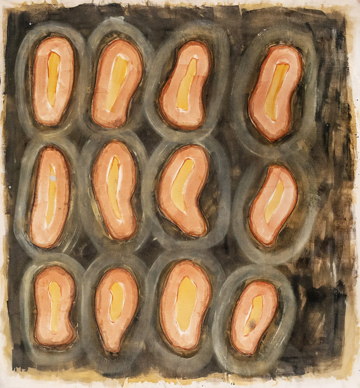 A creation from the dawn of creation, each one is unique, no two are alike. Warm color palette, acrylic painting in watercolor style.
