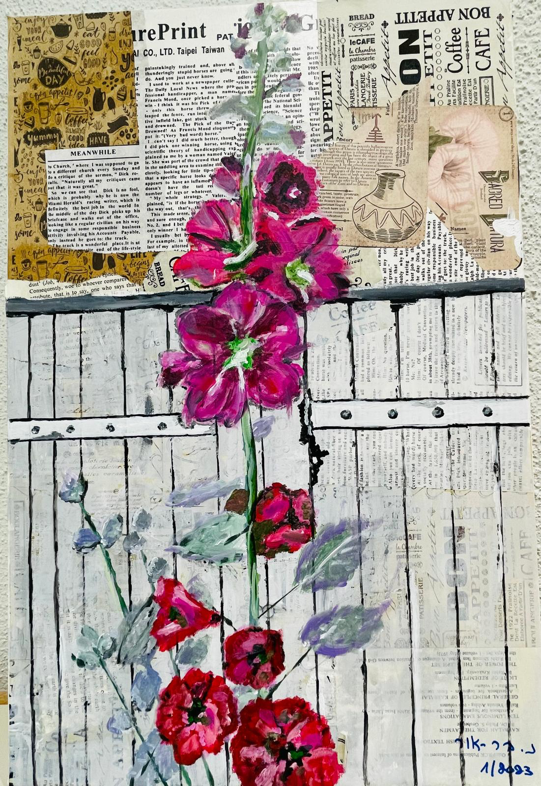 Flowers on the fence | Nili Bar On | Paintings | Under $1000