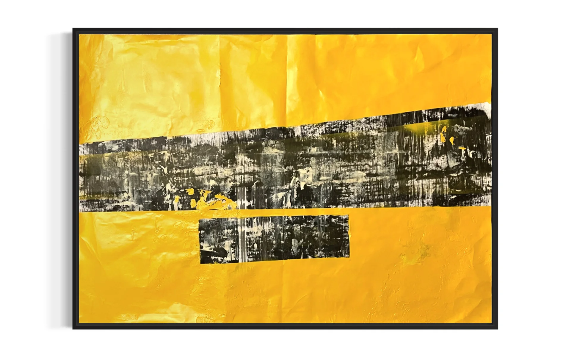 This piece combines acrylic knife work, brush textures, and spray paint on lightweight paper to create layered, tactile โmatiรจre.โ The fragile paper contrasts with the heavy vertical forms, giving the sense of an artifact being unwrapped. Inspired by futuristic archaeology, the work imagines scientific missions collecting fragments from distant planets