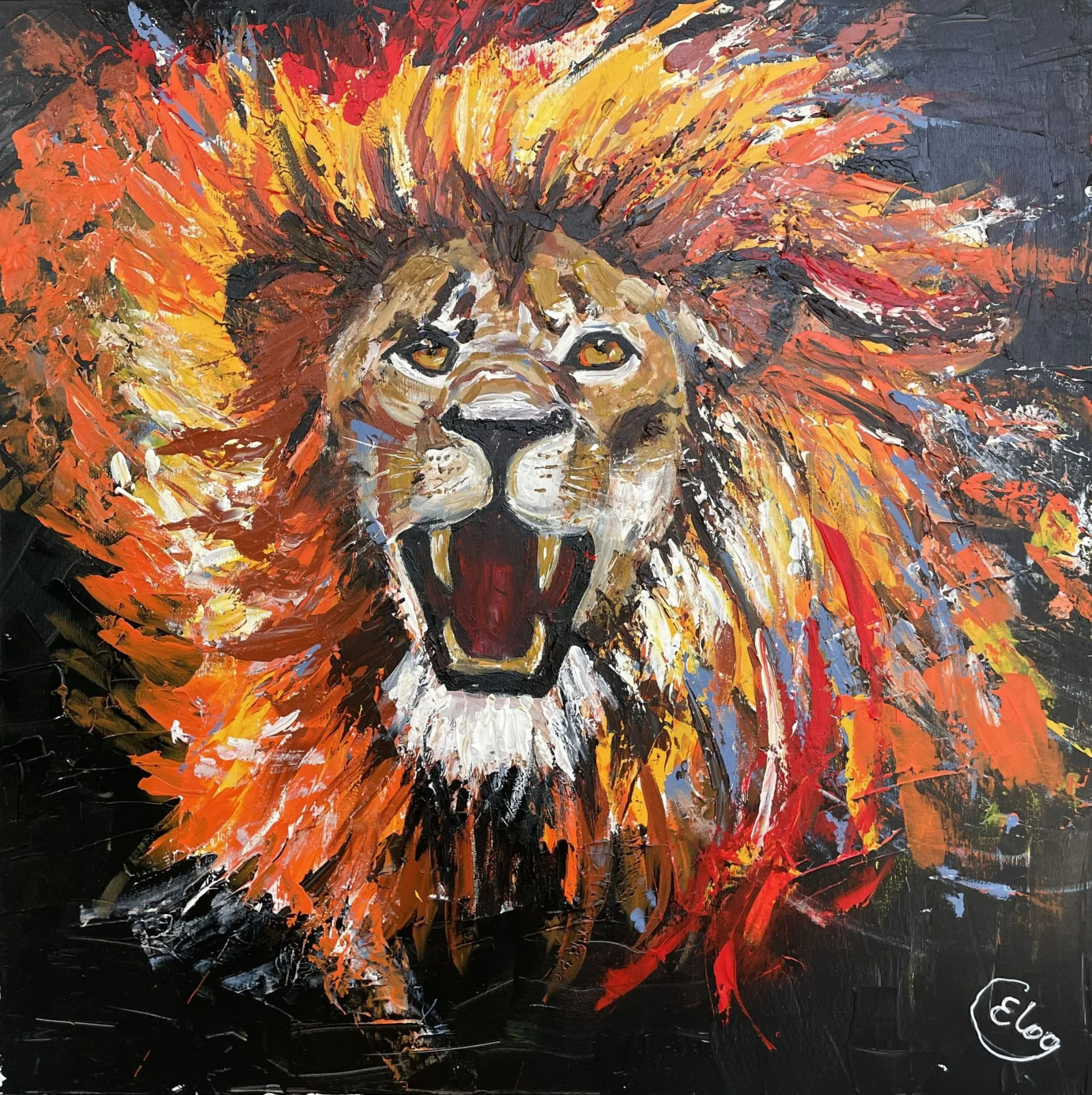 This painting reflects the pain and strength of the Israeli people. The lion โ an ancient symbol of courage and resilience โ stands for the spirit of a nation that refuses to bow down. Sometimes, to protect your home, you must show your teeth โ not out of hatred, but from love and determination. Created in an expressive manner, with bold brushstrokes and strong contrasts, the piece captures the raw power and pride of a people standing tall.