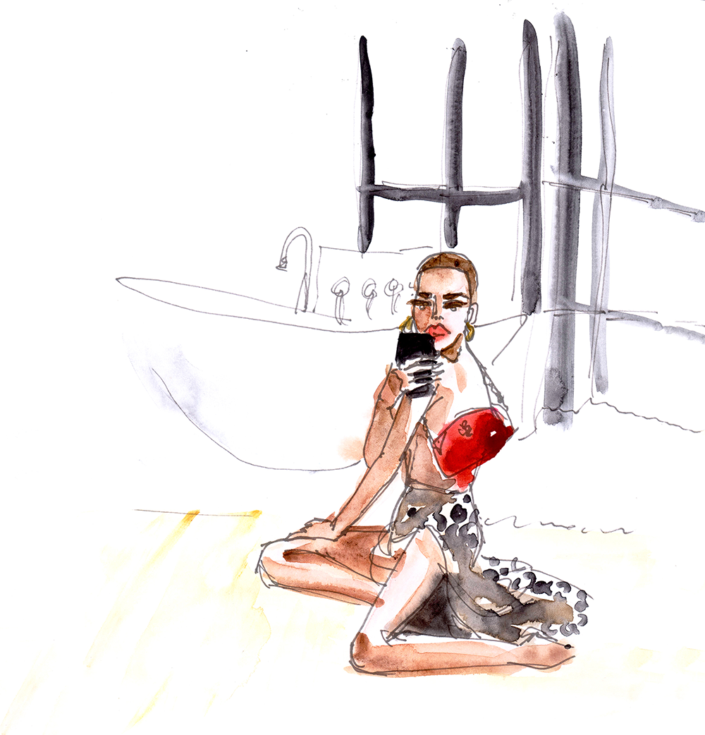 A soft, minimalist portrayal of urban femininity, captured in the simple act of a mirror selfie