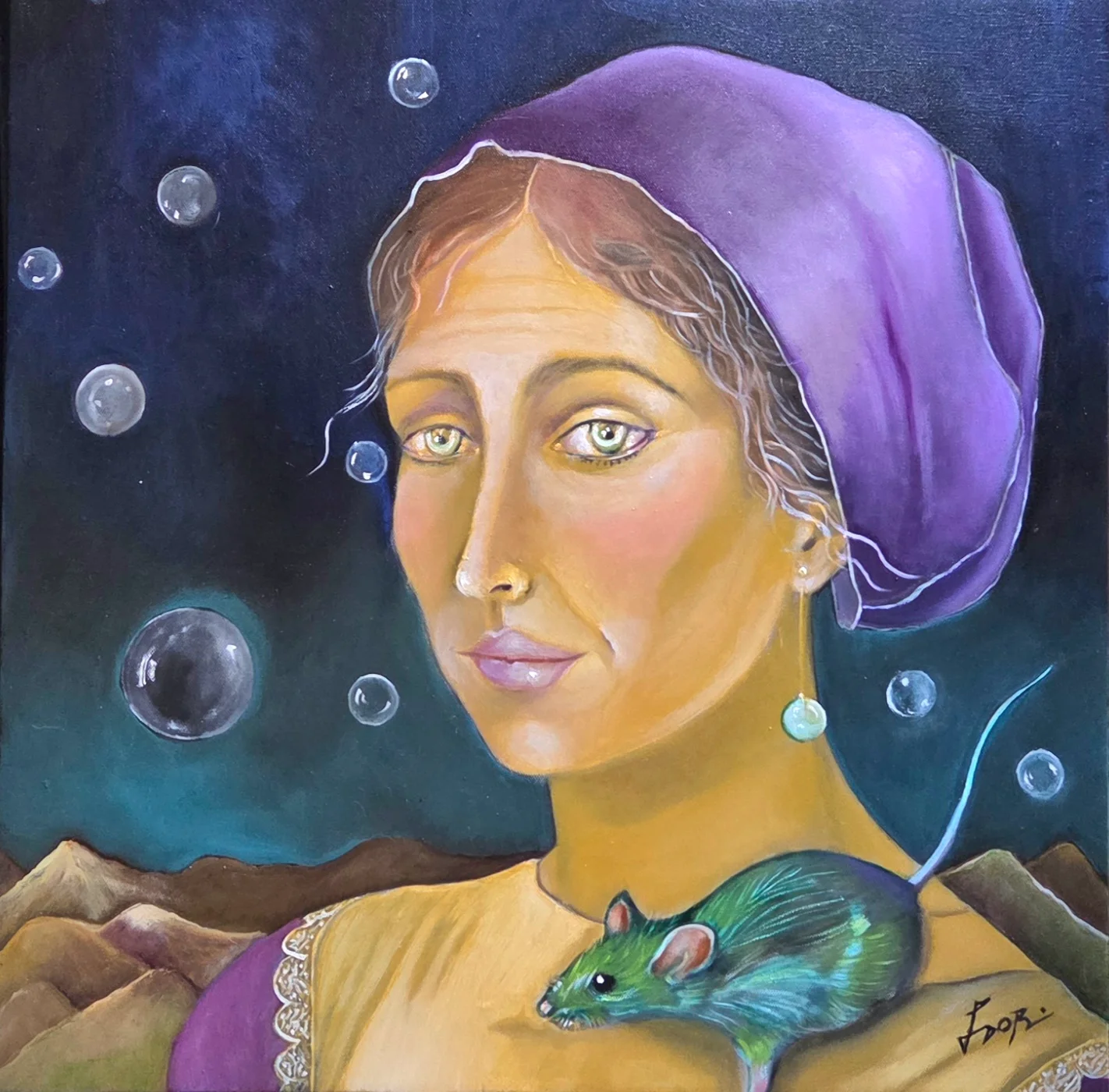 Mrs. Margot and the Green Friend | Lana Laor | Paintings | Under $1000