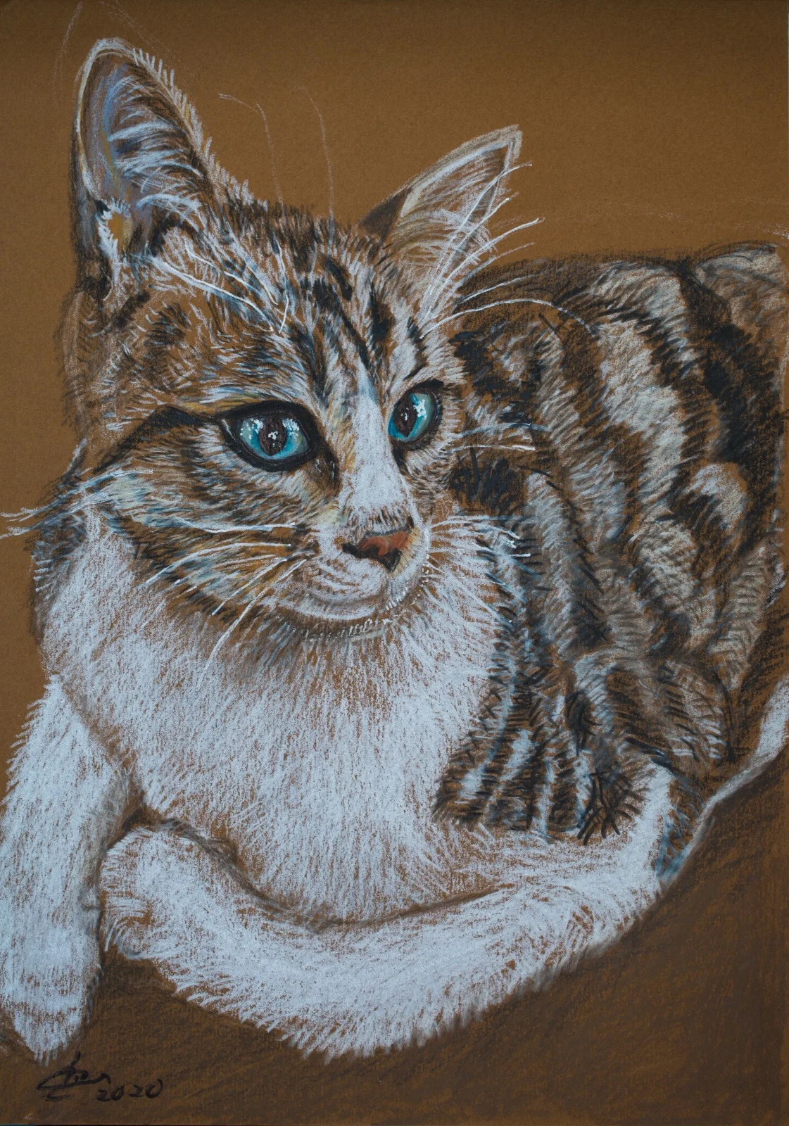 From the series: Corona Days. Between four walls. In the first year of the pandemic, during the lock-down, when we were all shut at home, I drew inspiration to paint from things I found around the house, objects, animals and more. this is a portrat of my cat - Natash