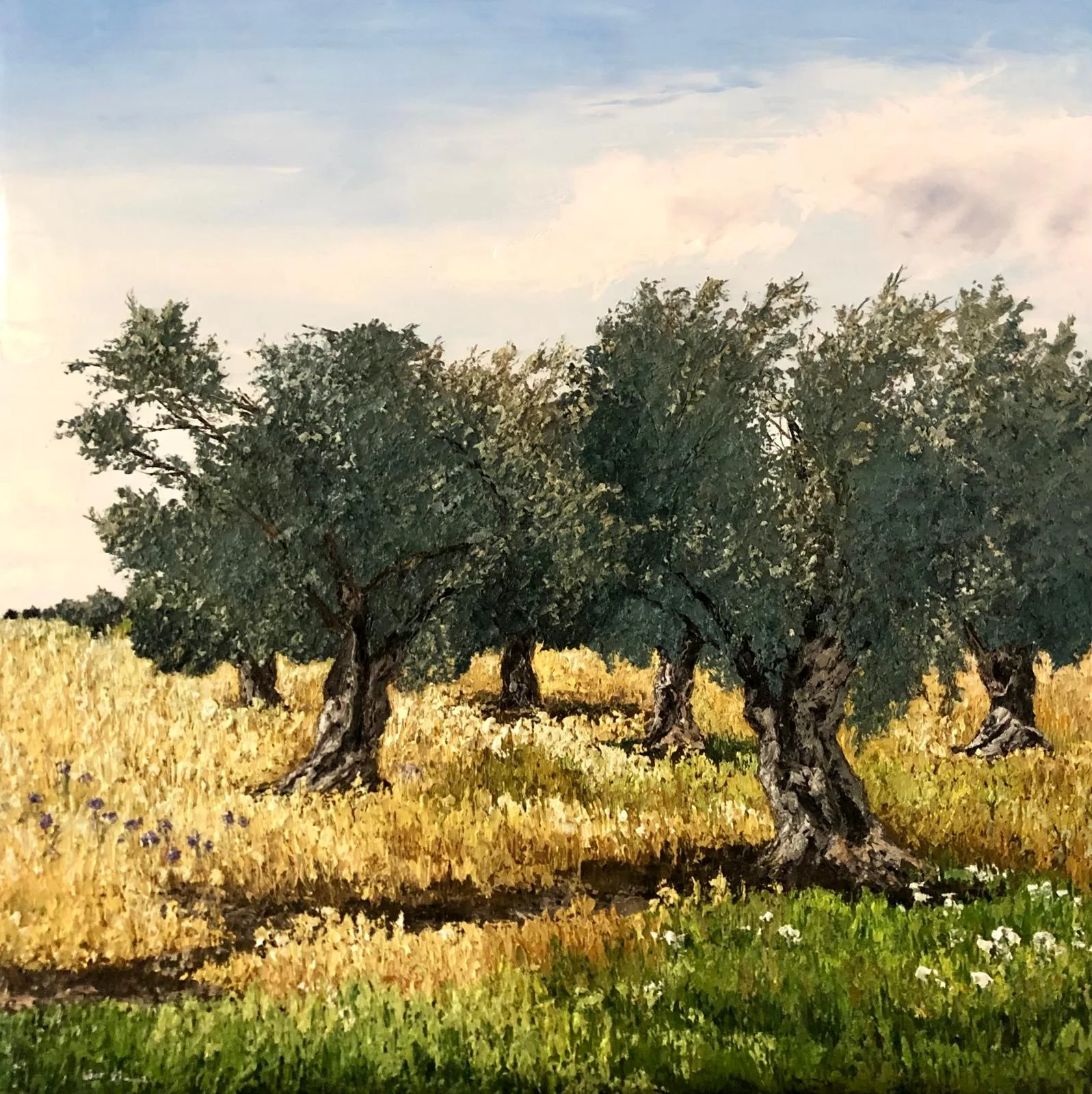 Olive trees in a golden field | Lior Kimmel | Paintings | Under $1000