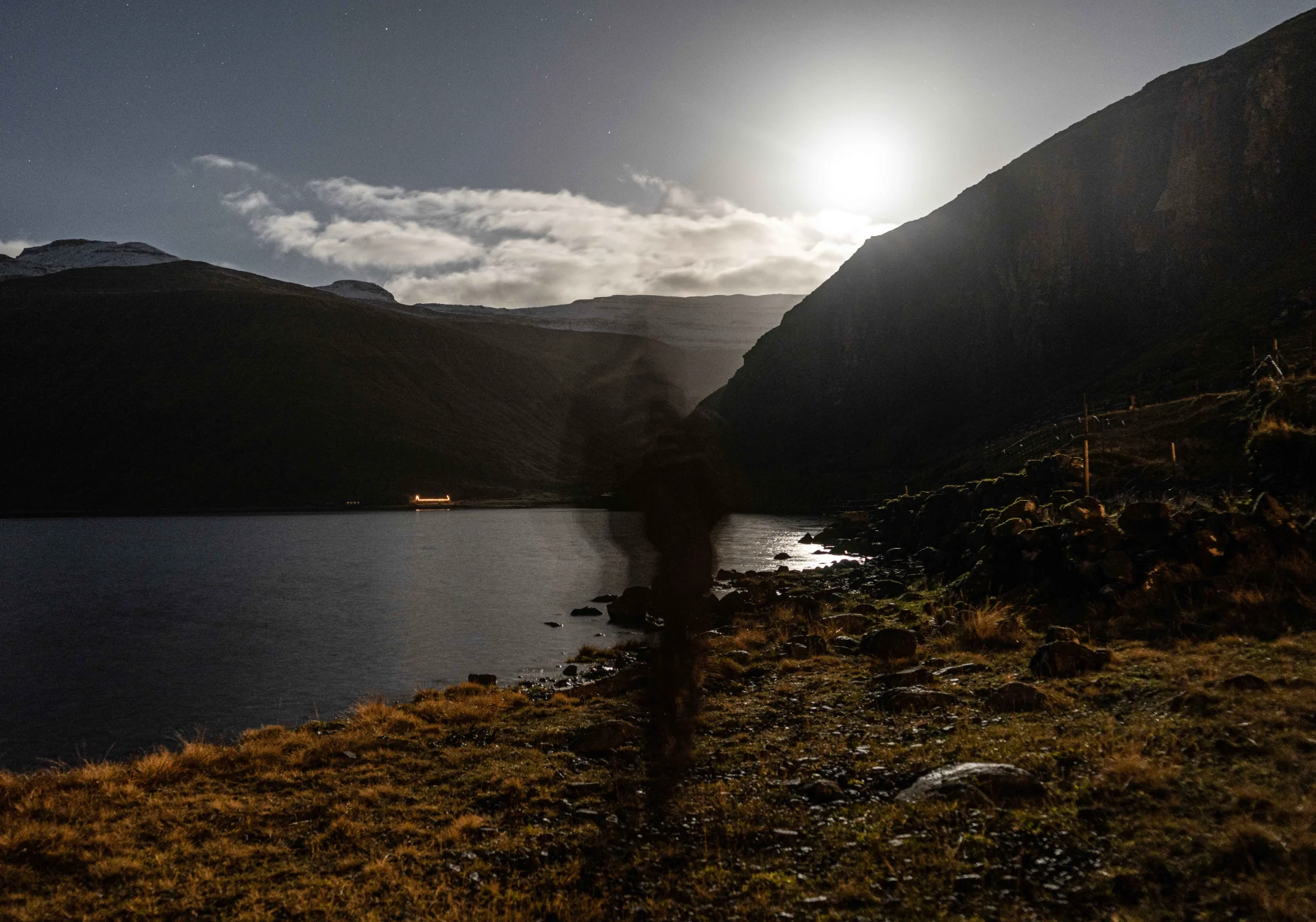 Long exposure shot taken in rural Faroe Islands. An image depicting an otherworldly experience of sunset in night skies and a breathtaking extra terrestrial landscape.