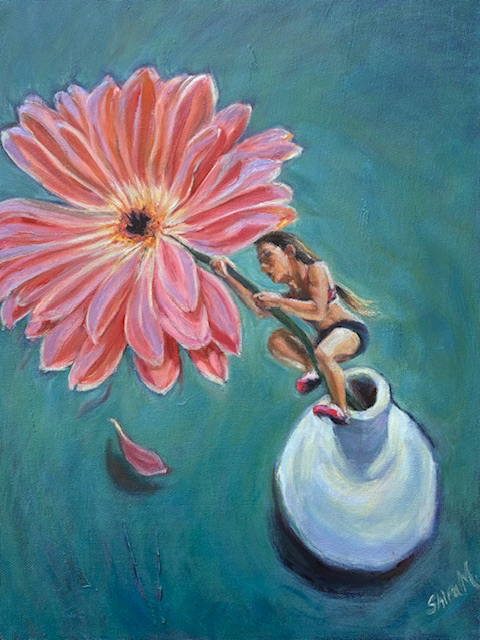 A playful little story of courage-a tiny climber, giant flower, and a choice to keep going all perched on a base and reaching for a soft pink bloom, the figure reminds us that strength doesn't have to be loud to be powerful