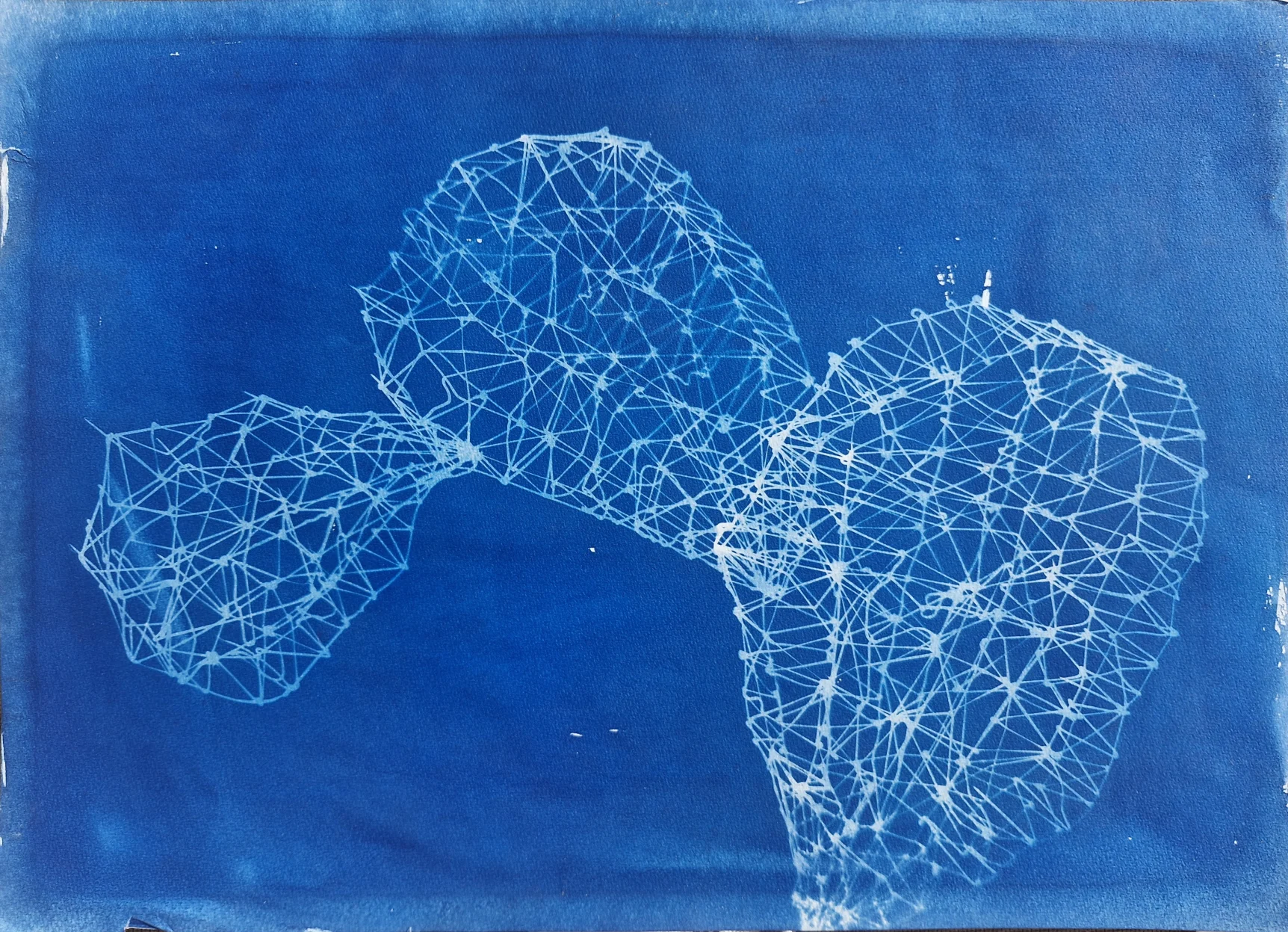 As the second installment in the series, this piece shifts the perspective to explore the interconnected nodes and dynamic growth of the cactus. The stark white geometric mesh against the deep Prussian blue continues the architectural theme, mapping the organic resilience of the Sabra through precise, modern lines.