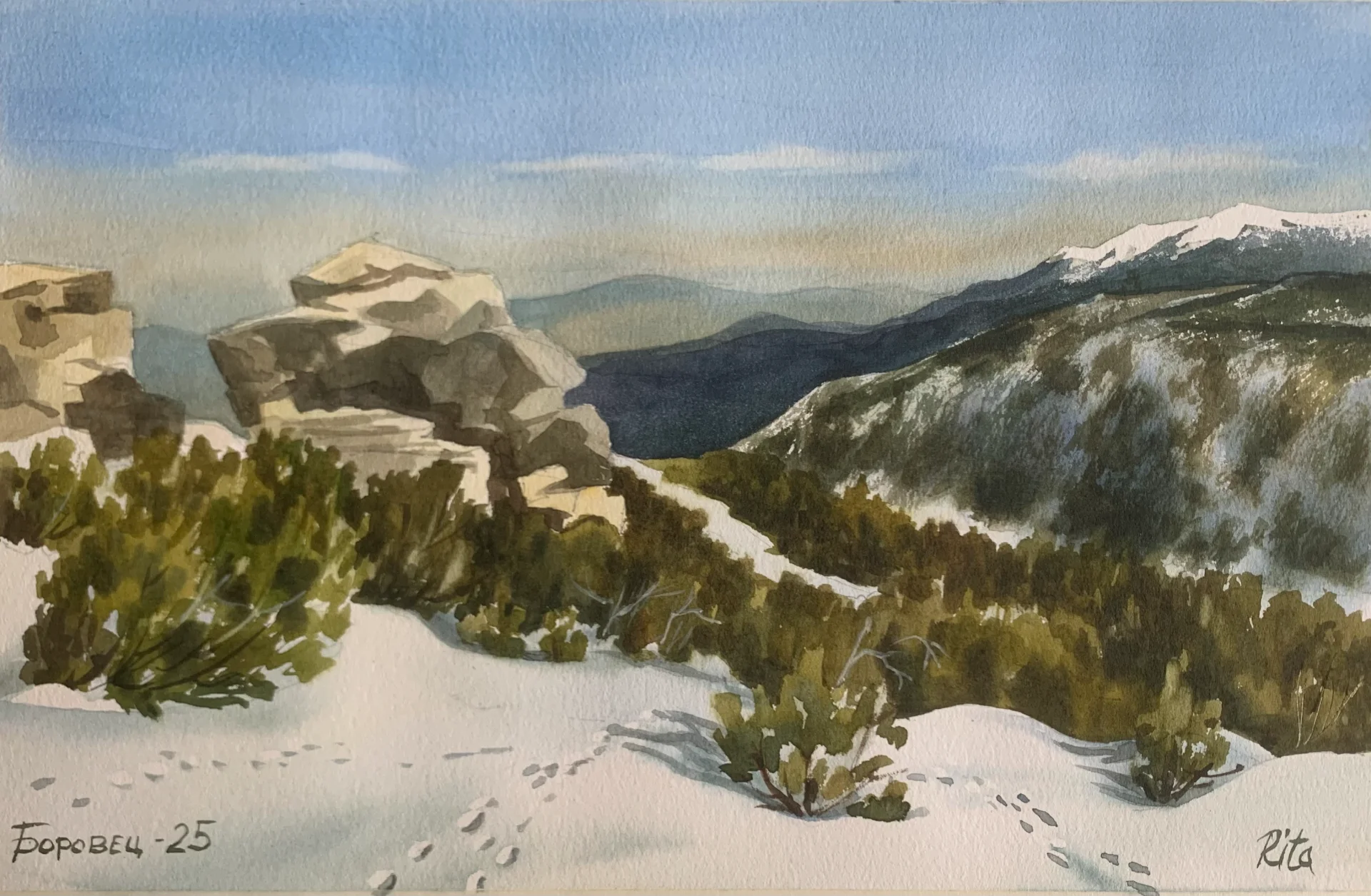 Borovets, Bulgaria .Approximate size of the framed picture (including frame) 38 x 28 cm.