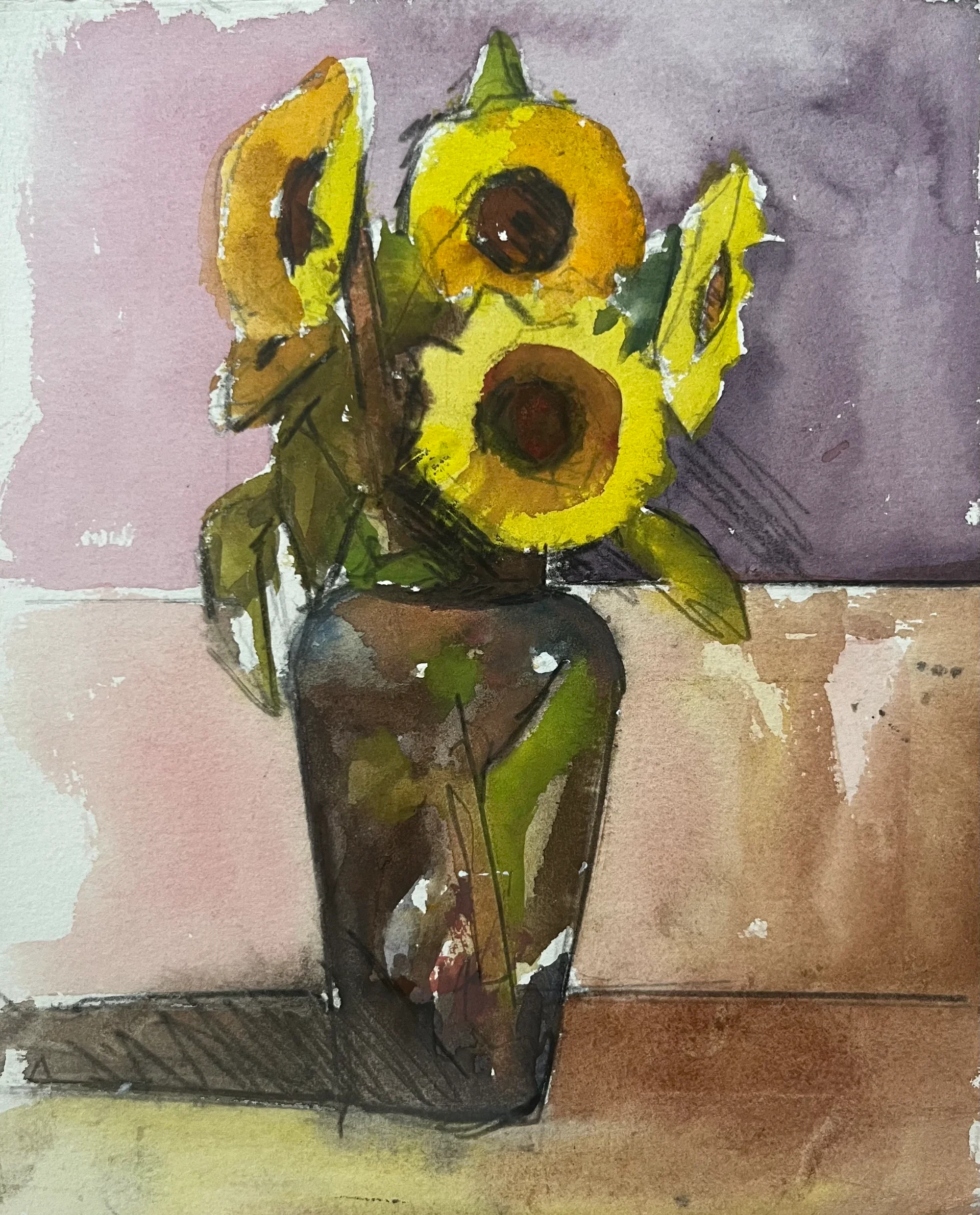 A cheerful watercolor of sunflowers filled with light