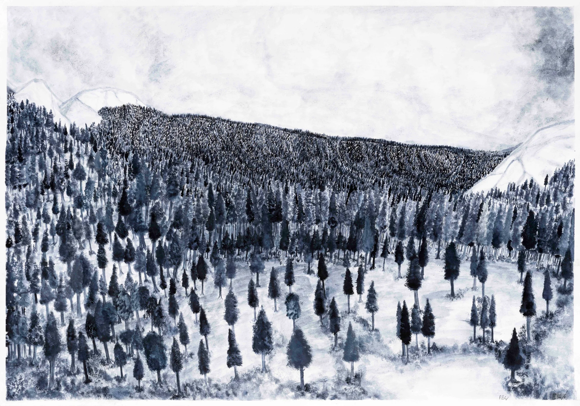 A semi abstract water color painting of a fictional forest. The trees in the forest were painted in a special technique i developed for painting trees specifically with concentrated watercolor pigments. This is a professionally scanned and digitized reproduction of the original painted over 2 months on 100x70 cm watercolor paper.