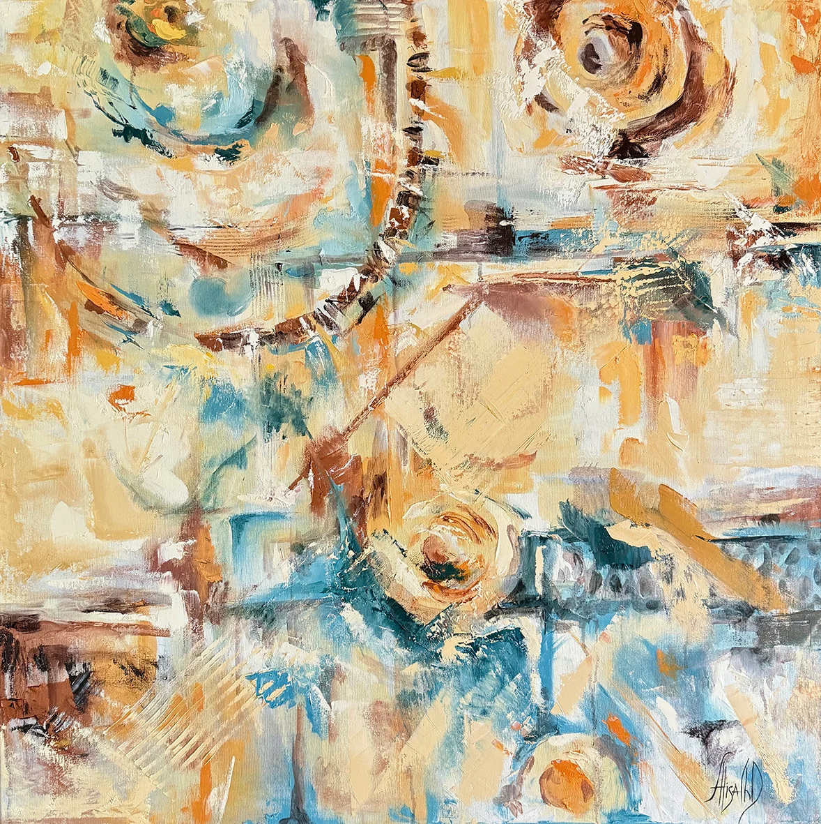 The Meaning of Being is an abstract painting exploring the quiet search for meaning and self-understanding. Through soft geometric forms, subtle lines, and a harmonious pastel palette, the work invites the viewer into a space of reflection and inner dialogue. This painting is not about giving answers. It is about asking the right questions. We often search for meaning outside ourselves, while the answers may already exist within. The artwork reflects on fundamental questions of human existence: Who are we? Why are we here? What is our place in this world? Muted milky tones, soft beige, and gentle blue-green hues โ colors associated with calm, balance, and contemporary trends โ create a sense of stillness and contemplation. This piece is created for those who feel, reflect, and allow space for questions.