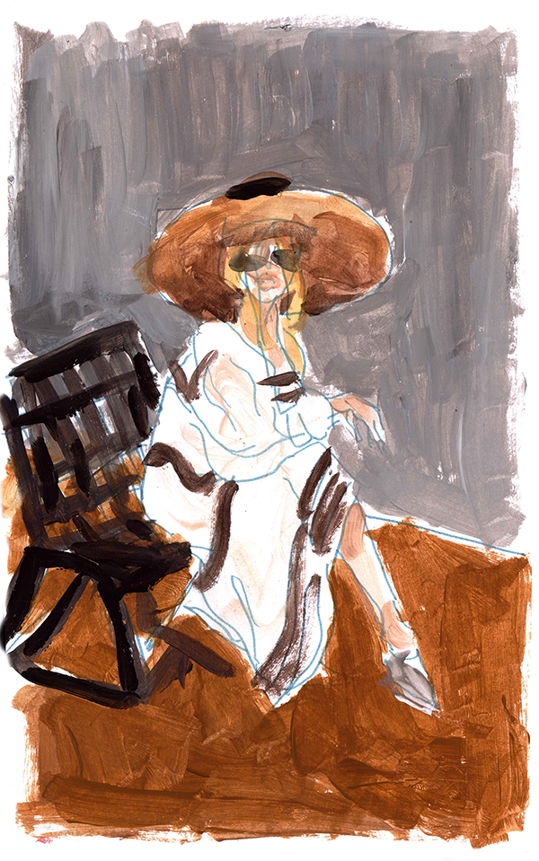 A relaxed feminine moment, where a white dress and straw hat tell the story of effortless beauty