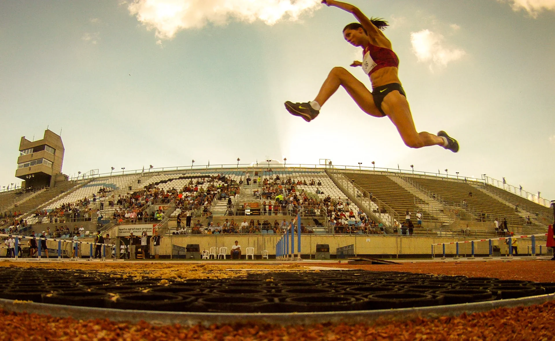 In July 2014, amidst the intense rocket fire of "Operation Protective Edge," the 78th Israel Athletics Championships were held at the Hadar Yosef Stadium in Tel Aviv. This photograph captures athlete Hanna Knyazyeva-Minenko in a moment of peak focus and explosive power during the Triple Jump final. In this competition, Minenko recorded a result of 14.23 meters, earning her the gold medal and the title of Israeli Champion. The image highlights the sharp contrast between athletic precision and the volatile security reality of the time: while the stands remained largely empty as spectators stayed away due to the threat of missile attacks and Home Front Command restrictions, Israeli athletics continued to demonstrate resilience and excellence on the field. The photograph was featured in the "Local Testimony" (Edout Mekomit) photojournalism exhibition in the Sports category, serving as a poignant visual record of the Israeli story during the summer of 2014 โ sports under fire.