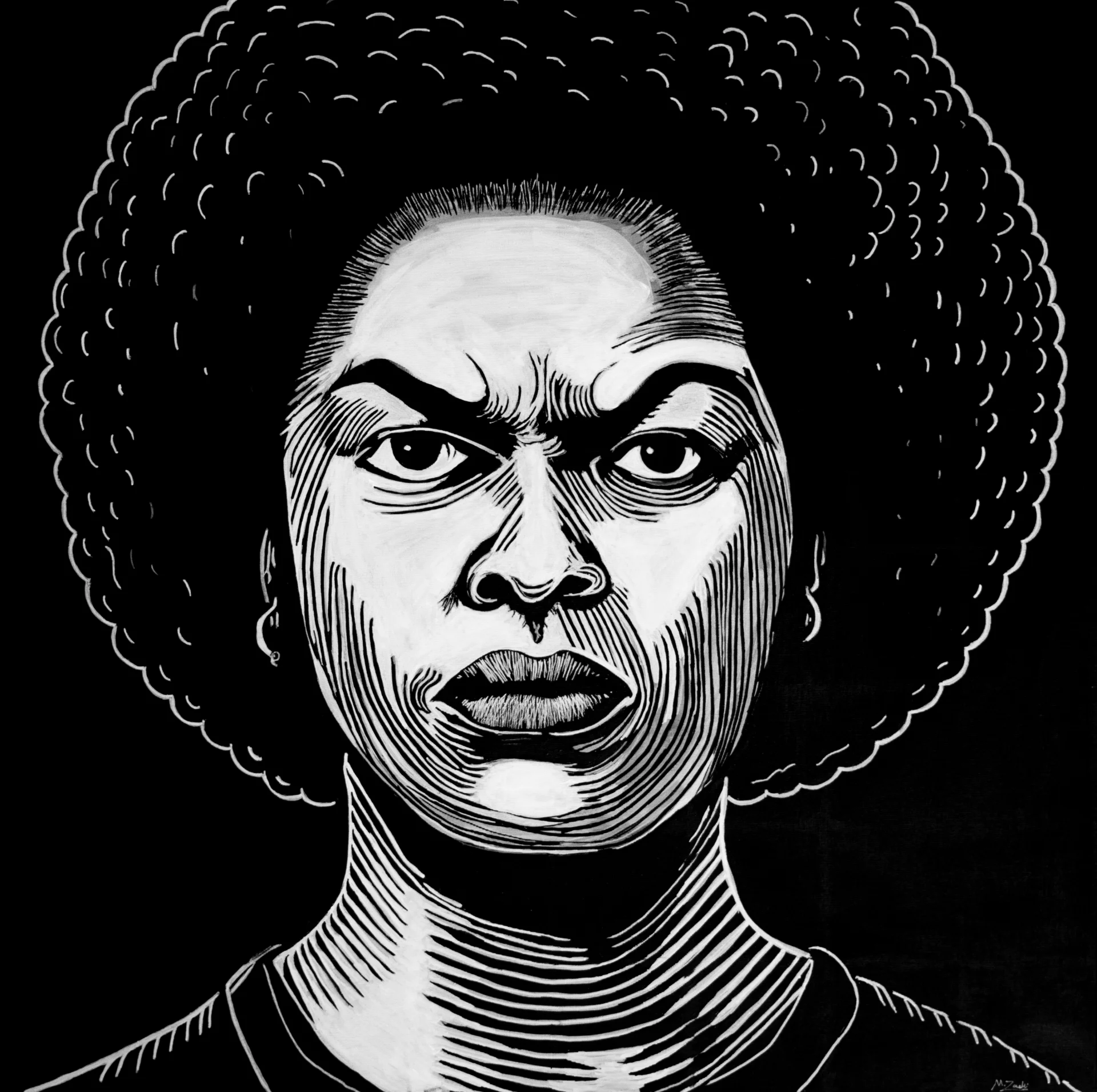 A powerful black and white acrylic portrait capturing a moment of silent intensity and inner strength. The direct gaze confronts the viewer, transforming stillness into presence and restraint into power. Through bold contrast and minimal color, the work explores identity, dignity, and unspoken resilience.