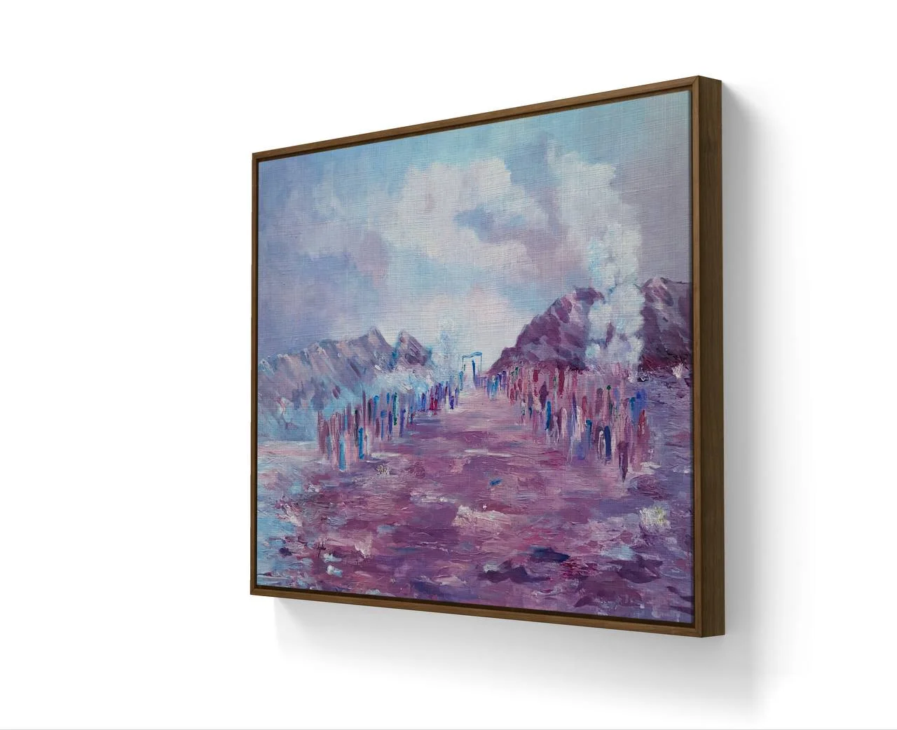 An expressive, abstract composition exploring the idea of divine guidance in human connection. Flowing strokes and soft transitions of color suggest a path opening against all odds, leading toward a central point of unity and blessing. The work blends movement, emotion, and spiritual symbolism.