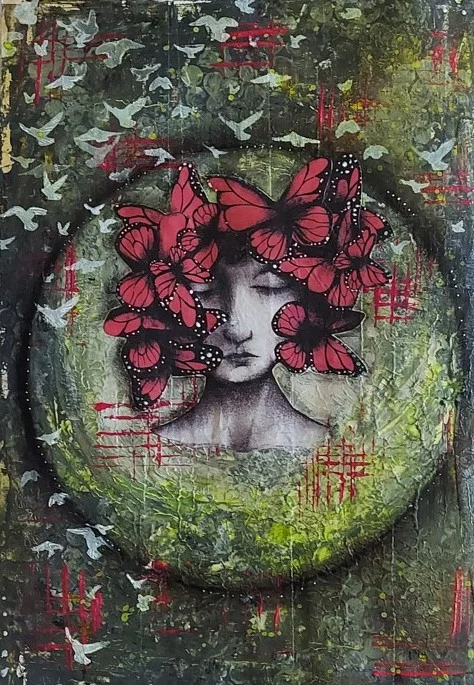 Acrylic, Paper, Stencil