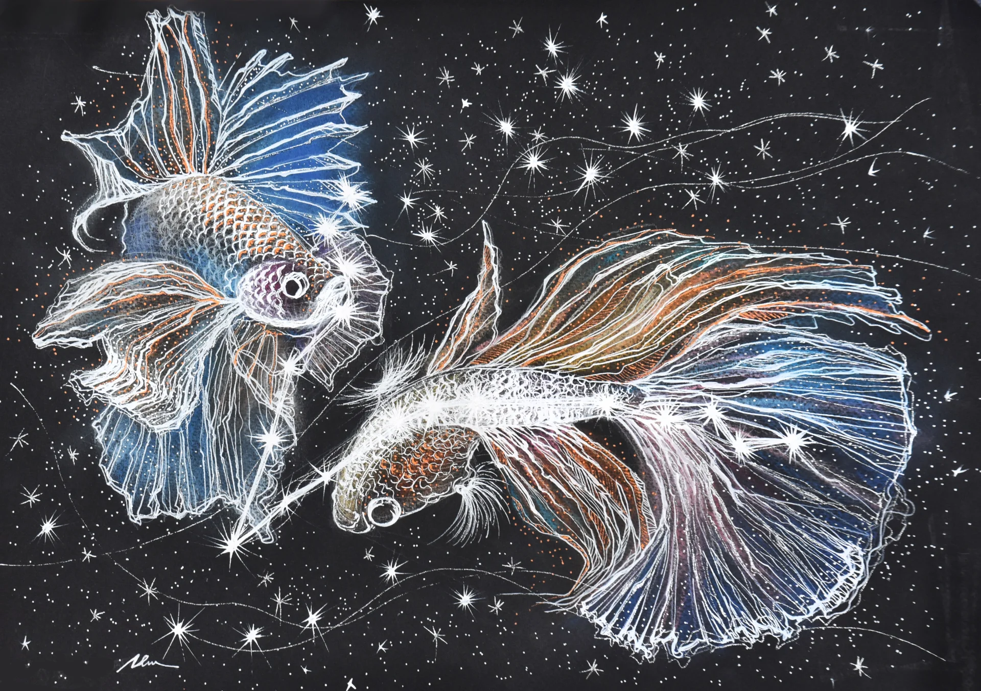 העבודה היא חלק מסדרת גלגל המזלות ושואבת השראה מאטלס הכוכבים של האסטרונום הפולני־גרמני יוהנס הווליוס. היא מתארת את קבוצת הכוכבים ומזל דגים, ומשלבת בין מקורות אסטרונומיים לצורות אורגניות זורמות.