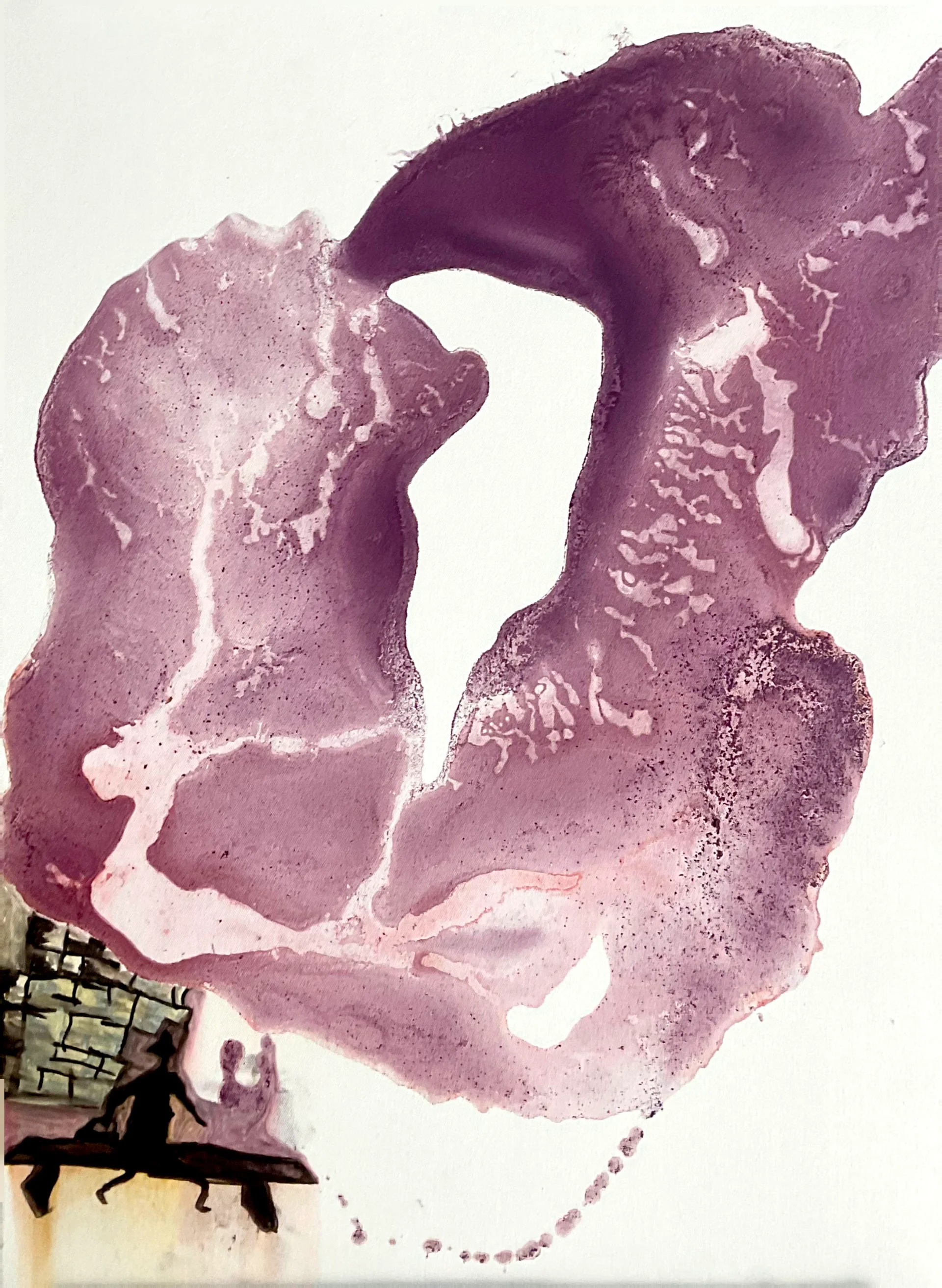 עבודה בטכניקה מעורבת על קנבס איטלקי, שנוצרה באמצעות צבע שמן נוזלי מדולל וראשי מכחול בדיו. הקומפוזיציה התגבשה בתהליך ייבוש על הרצפה במשך כ־48 שעות, שאִפשר לפיגמנטים להתפשט, לשקוע ולחשוף נוכחות פיגורטיבית מרומזת בתוך שדה מופשט ואטמוספרי.